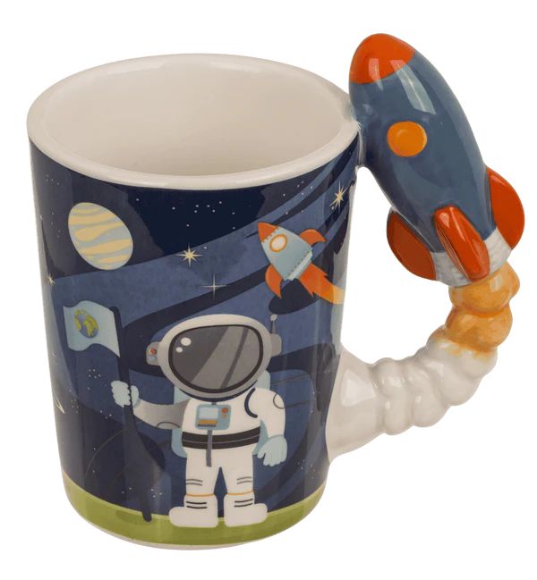 Потопи се в безкрая на космоса с тази уникална чаша с впечатляващ дизайн. Върху нея е изобразен космонавт, заобиколен от цветни планети, които създават усещане за приключение и откривателски дух. Истинският акцент е дръжката във формата на ракета – оригинален детайл, който прави чашата не просто практична, а и истинско визуално изживяване.Идеална за сутрешното кафе, чай или горещ шоколад, тази чаша е чудесен избор както за подарък, така и за лично вдъхновение. Подходяща за деца и възрастни, които обичат звездите, науката и всичко извън земната орбита.