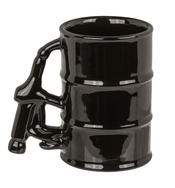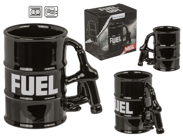 Запали деня си с чаша, която е на пълни обороти! Тази впечатляваща порцеланова чаша е създадена във формата на метален варел, а дръжката ѝ е като истински пистолет за зареждане на бензин – детайл, който придава автентичен и индустриален характер.